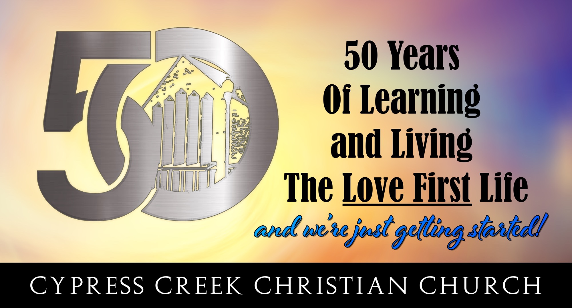 Come, Holy Spirit – infuse and animate our tired bodies. Come, Holy Spirit – infuse and animate your body, the Body of Christ known as Cypress Creek Christian Church. Come, Holy Spirit, as we both celebrate this anniversary of our birth and take the first steps into the next fifty years. Come, Holy Spirit! Amen.