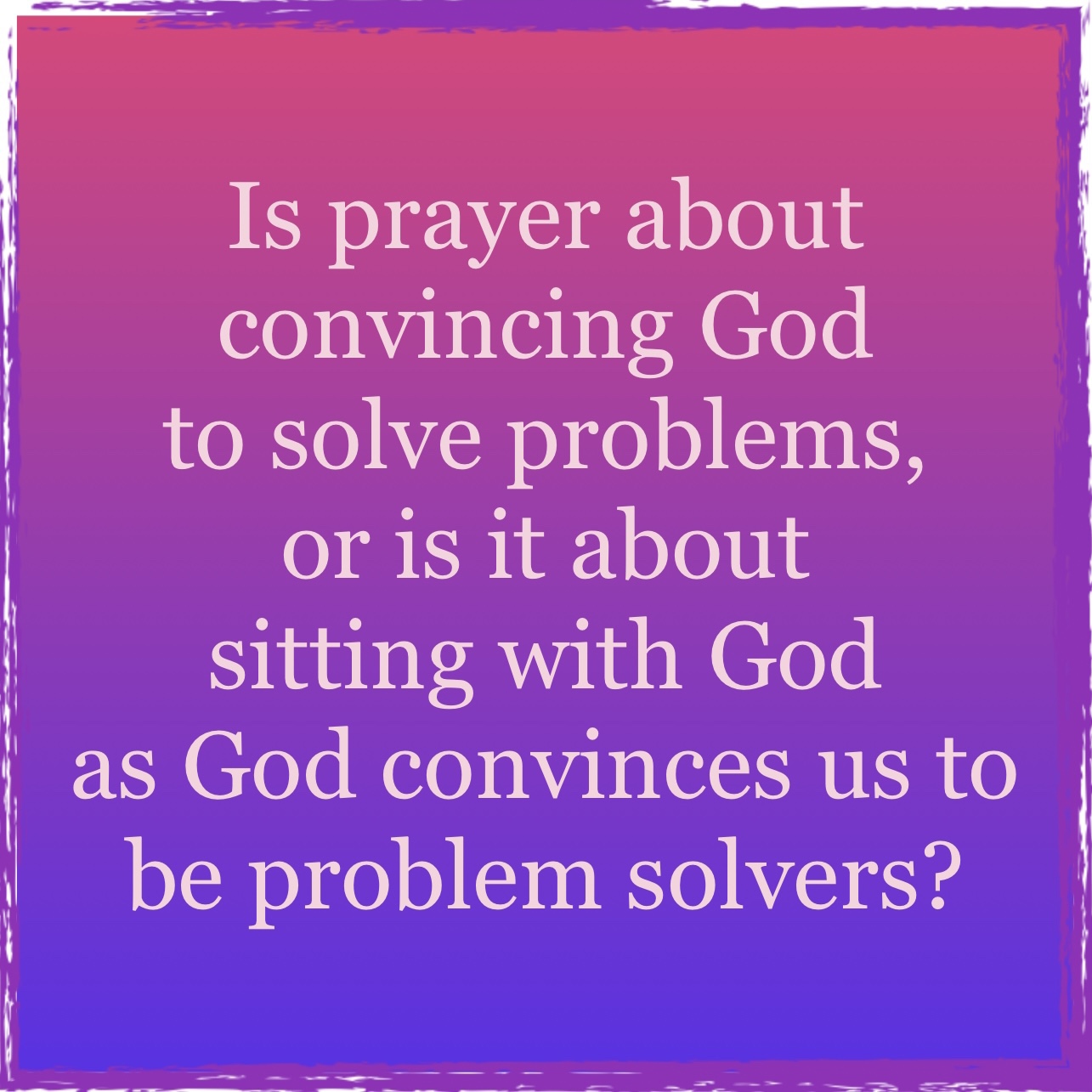 Today in worship, we look at another aspect of prayer. Last Sunday, I went very basic: the “reward” (Matthew 6:6) or desired takeaway from prayer is ultimately God. Too often, there is a tendency to expect too much of prayer. There might be some who will be upset with that comment, but I find people praying for all kinds of things that may not necessarily be in line with who God is and what God is seeking in the world. In the last six months, malnutrition among children in Somalia has increased by 300%. There is a drought devastating the area, and the usual source of emergency food would be Ukraine — which, of course, is a problem. If solving this crisis only required prayer, I think all world hunger would have been solved long ago. But if God is providing a prayerful person a green light so they can get home in time to watch Wheel of Fortune, but is allowing children to die of hunger, then I have some real concerns about the moral integrity of that God. Is prayer about convincing God to solve problems, or is it about sitting with God as God convinces us to be problem solvers? Not every problem can be fixed, at least in the way we’d like. But at the end of the day, what is our reward or desired purpose in prayer? I think we will be disappointed if we believe the consistency or intensity of our prayers will somehow be the key component in making them come true.